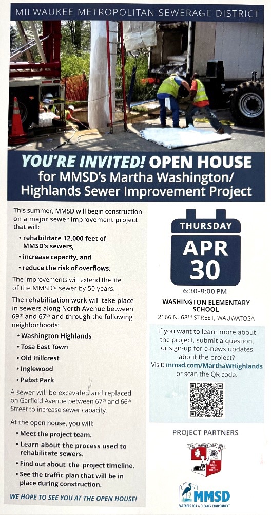 YOU’RE INVITED! OPEN HOUSE for MMSD’s Martha Washington/ Highlands Sewer Improvement Project
