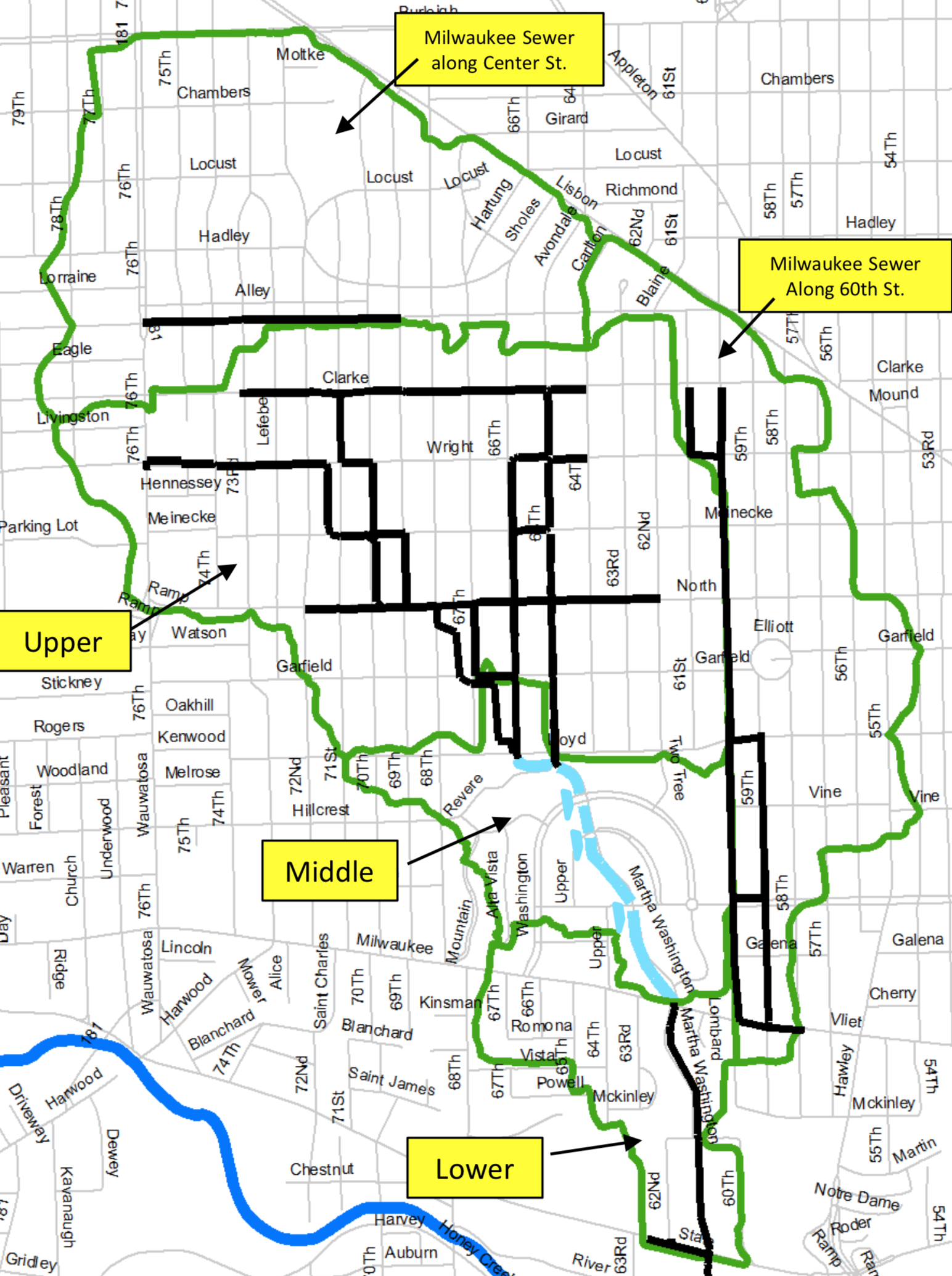 Please note that there are no recommendations as to how to proceed at this point in the study process. Members of the public will be able to make written comment at the meeting. The Schoonmaker Creek runs from Kops Park neighborhood in Milwaukee in storm pipes underground to the Washington Highlands, where it is in an open channel until Vliet Street when it goes back underground, and eventually terminates into the Menomonee River.
