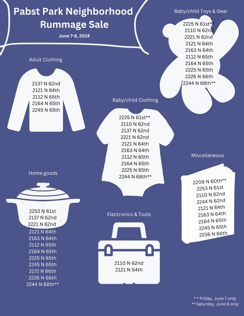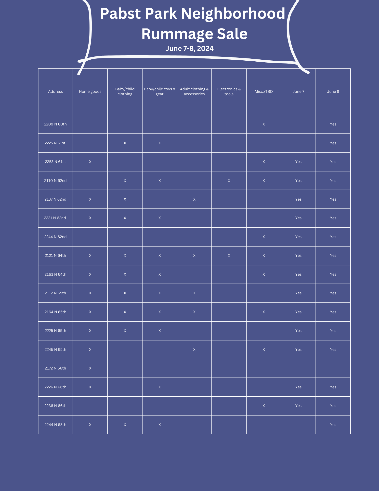 If you are looking to shop neighbors’ treasures, that’s great too. Stay tuned – We’ll be posting a list of participants closer to the Rummage Sale dates.