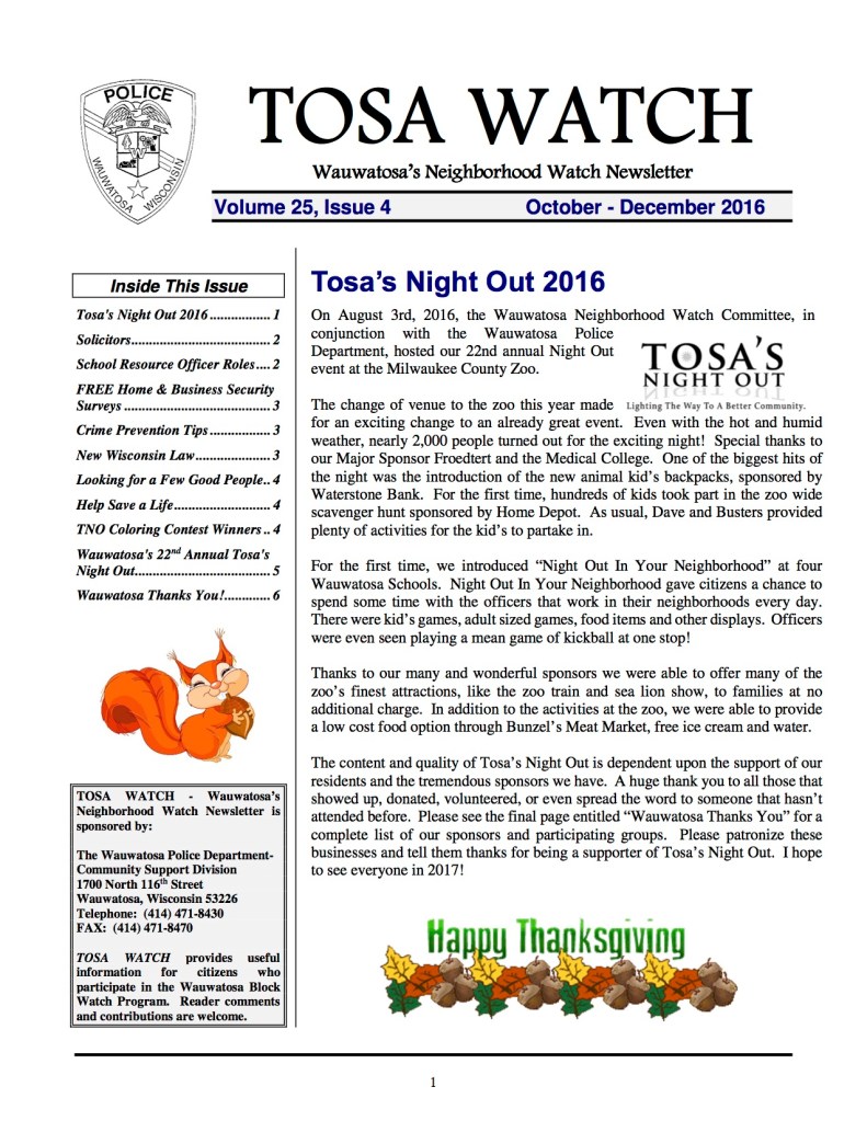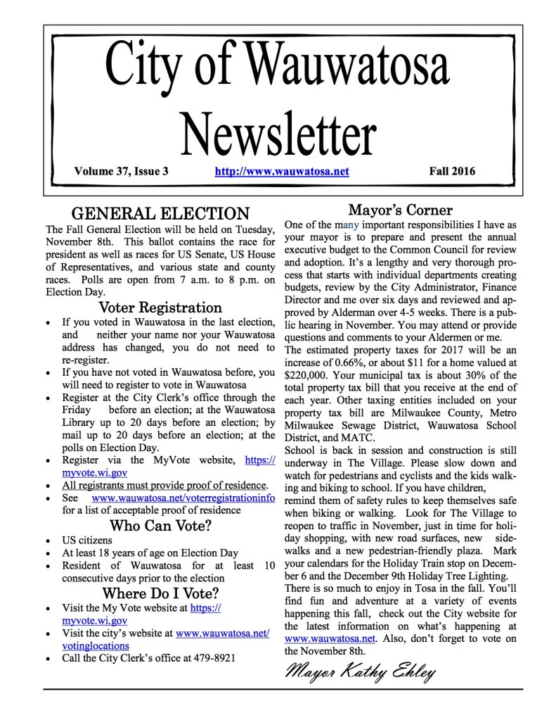 City of Wauwatosa Fall Newsletter 2016